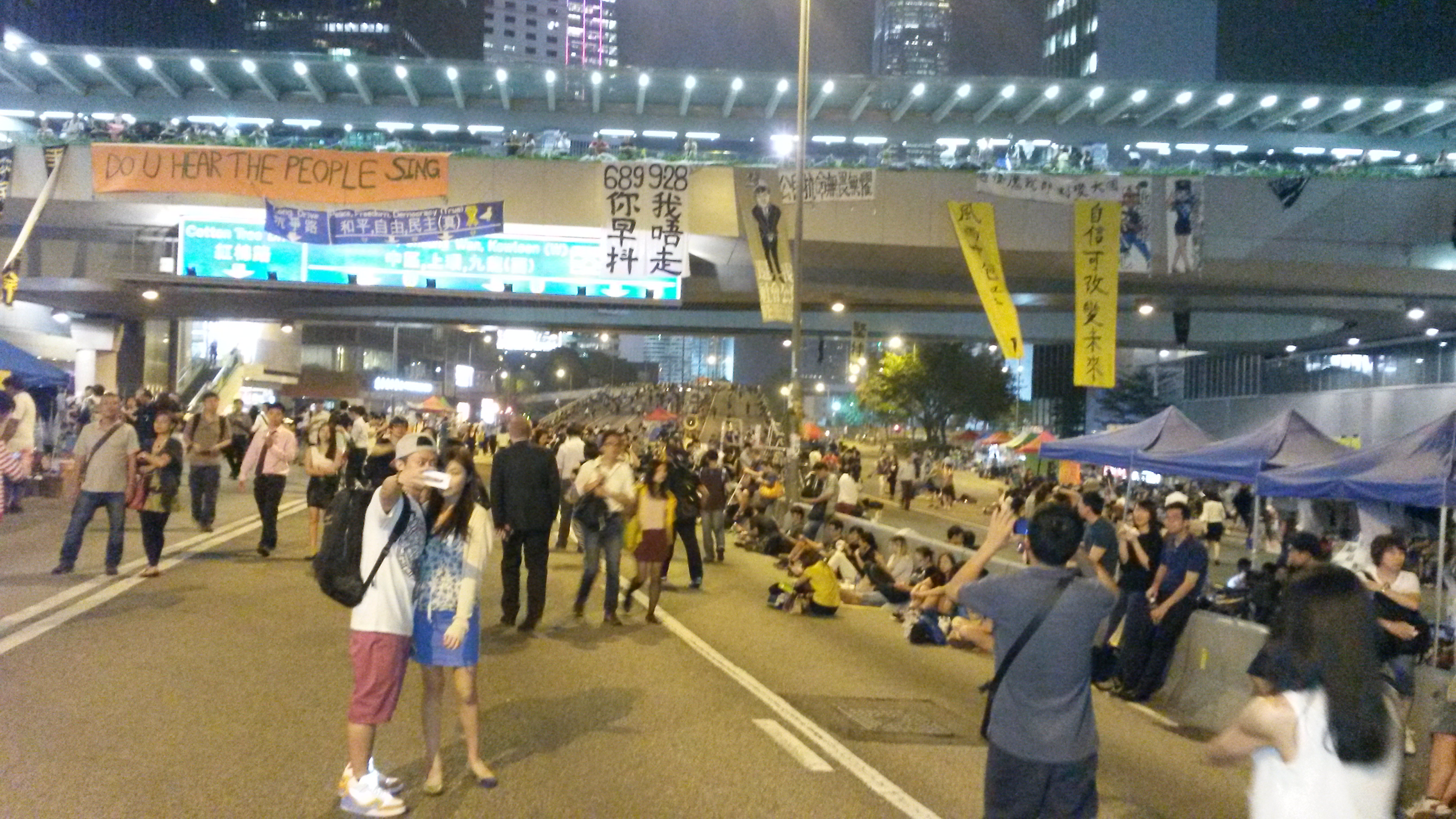 Protesters have shut down a main highway running through the epicenter of Hong Kong’s financial district. Civil disobedience such as this has been a hallmark of the pro-democracy protests.