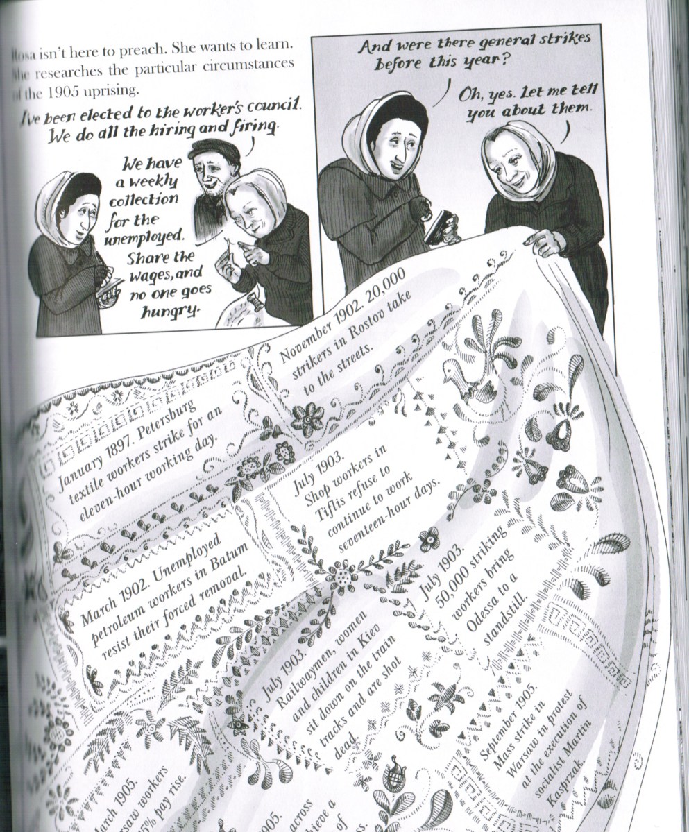 CCI07152016_00000 Published July 30, 2016 at 2045 × 2471 in Graphic Histories: “Red Rosa” by Kate Evans ← Previous Evans shows how Rosa uses the people’s history…